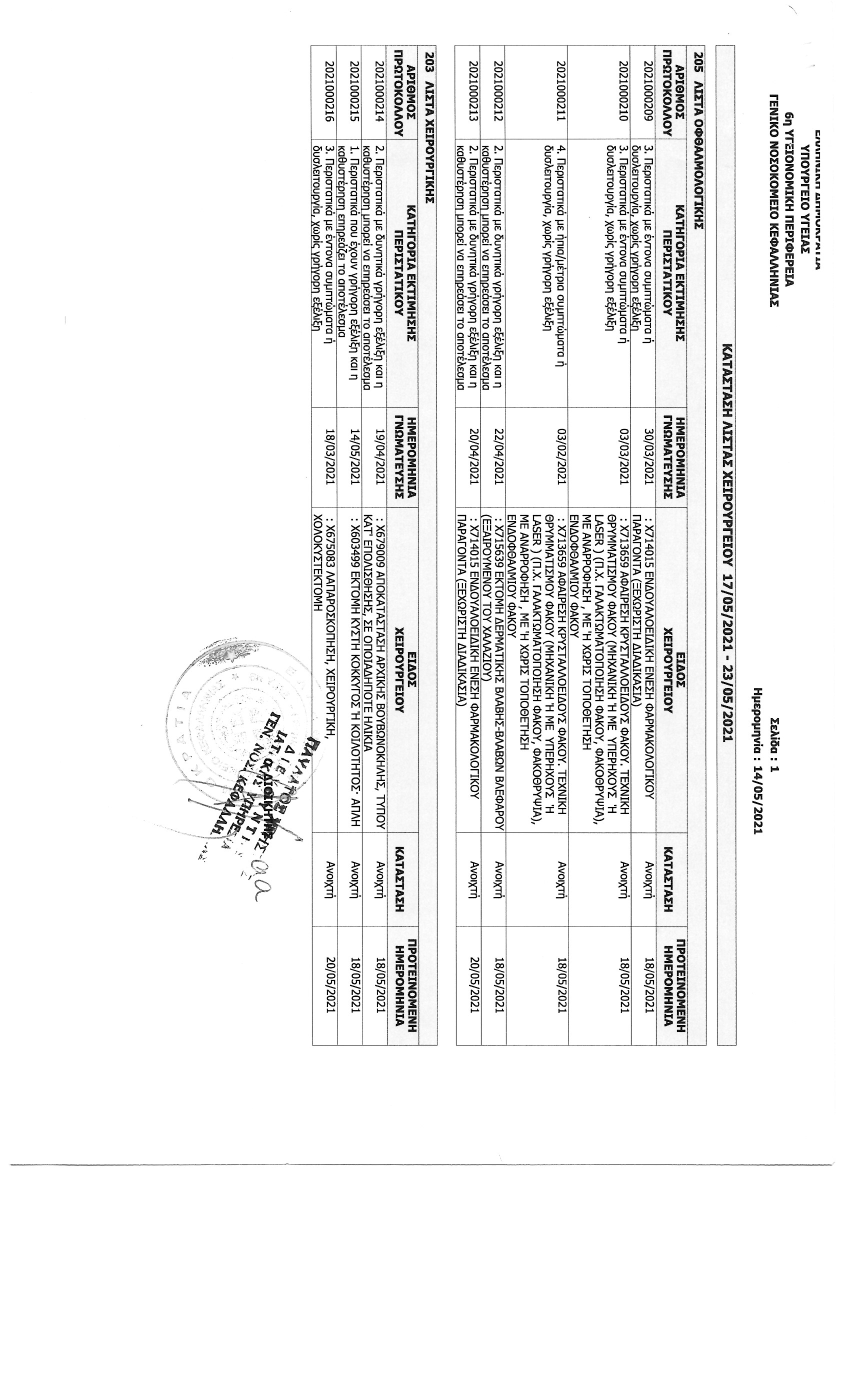 ΛΙΣΤΑ ΧΕΙΡΟΥΡΓΕΙΟΥ 17.5-23.5.2021