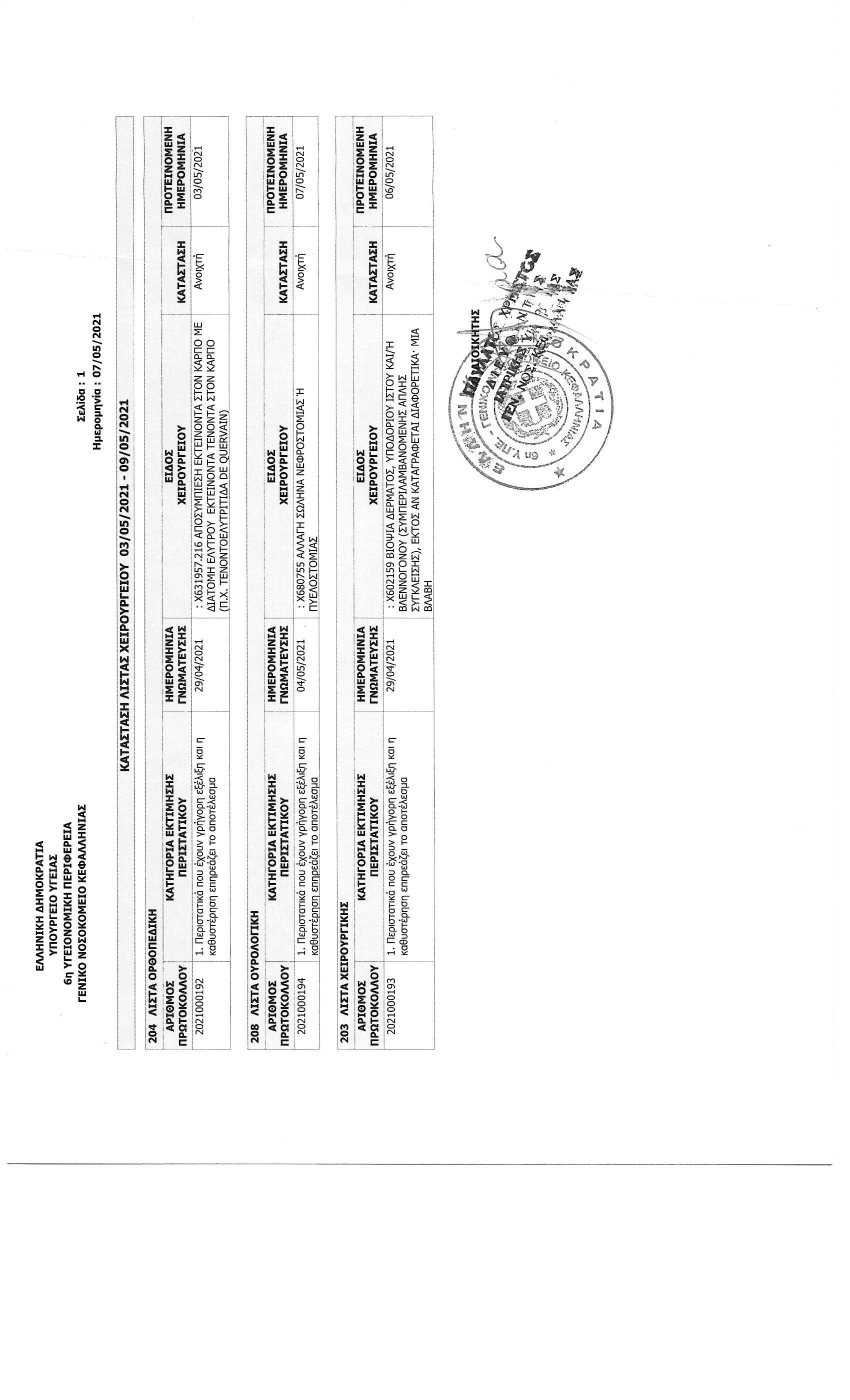 ΛΙΣΤΑ ΧΕΙΡΟΥΡΓΕΙΑ 3.5-9.5.2021
